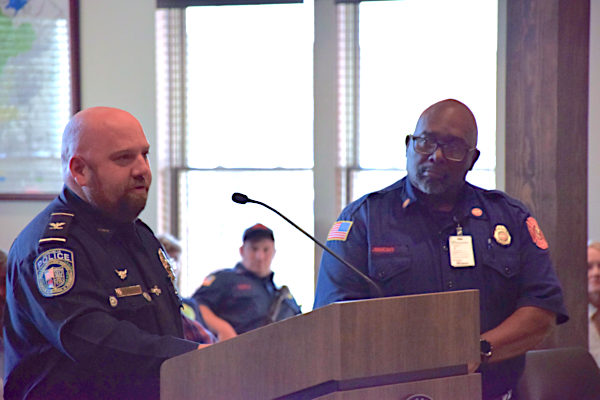 Four Public Safety personnel were recognized Tuesday, July 2, at the Cornelia Commission meeting. On Friday, March 29, Officer Jackson Cooter and Officer Jonathan Hughes responded to an unconscious and unresponsive infant at Walmart. The officers took the child outside and handed her to firefighter Chandler Austin. CPR was administered along with firefighter Kyle Dodson.