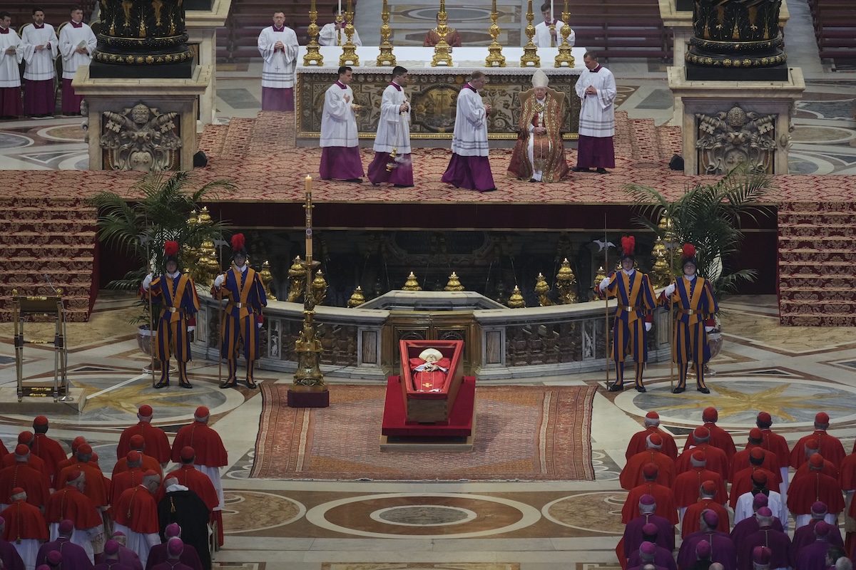 Earlier, Cardinal Giovanni Battista Re, the 91-year-old dean of the College of Cardinals, eulogized Francis as a pope of the people, a pastor who knew how to communicate to the “least among us” with an informal, spontaneous style.