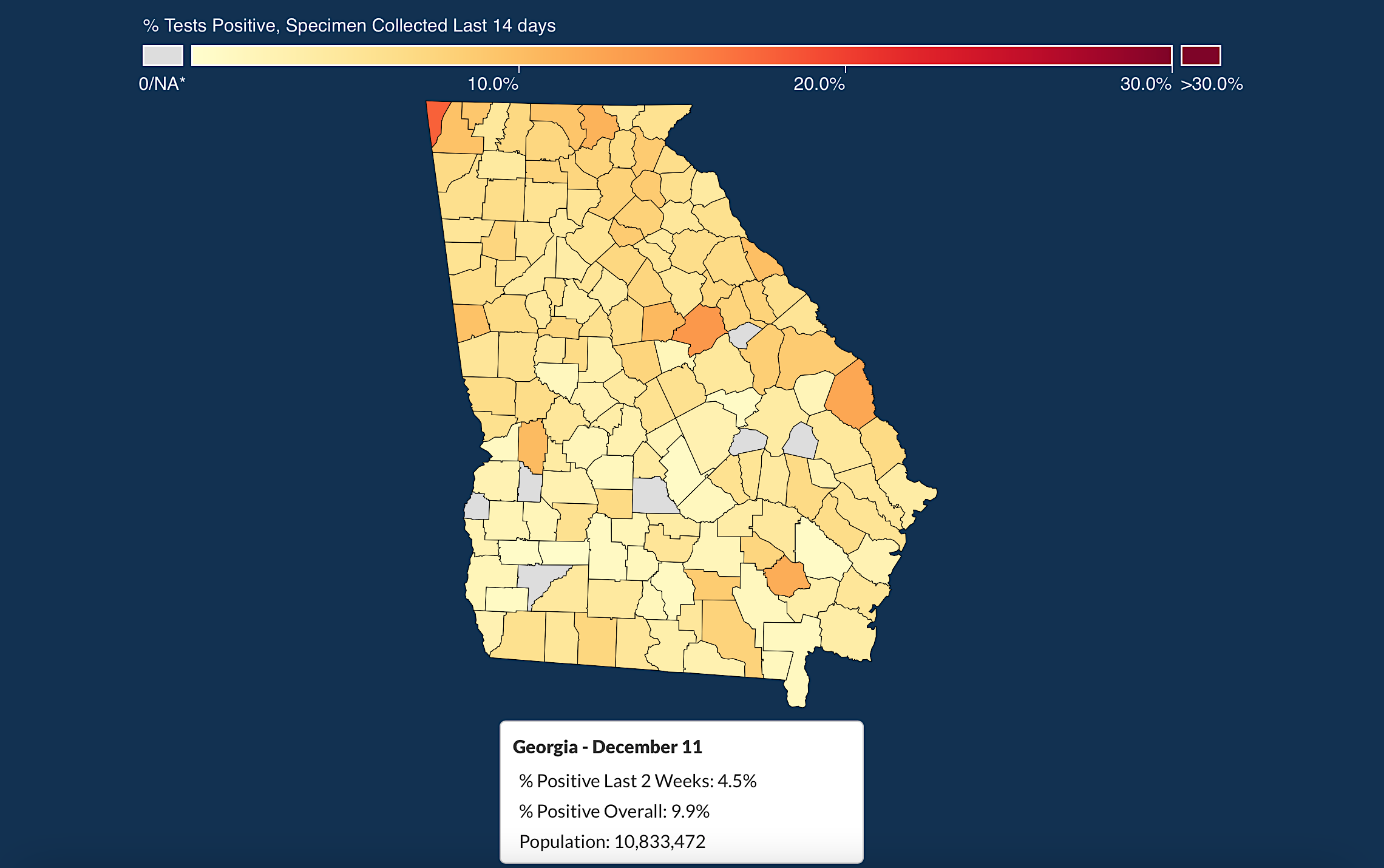 The current surge is bad, not just across the region, but the entire state. The Georgia Department of Public Health’s once lightly colored heat map displaying positivity rates in each of Georgia’s 159 counties, is now drenched in red depicting a significant spike in confirmed cases.