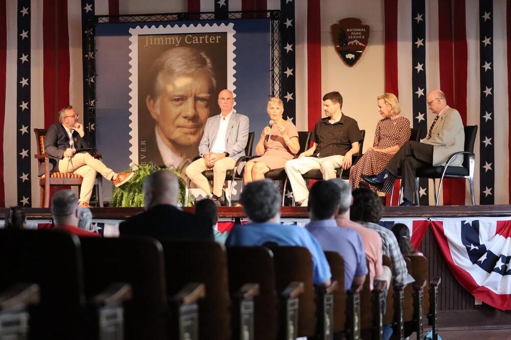 An Aug. 16 Rosalynn Carter tribute panel moderated by Andrew Greer at the Jimmy Carter National Historical Park included Richard Gatchell, Kim Fuller, James Carter IV, Mary Eisenhower and Larry Cook. (Larry Cook/Facebook)