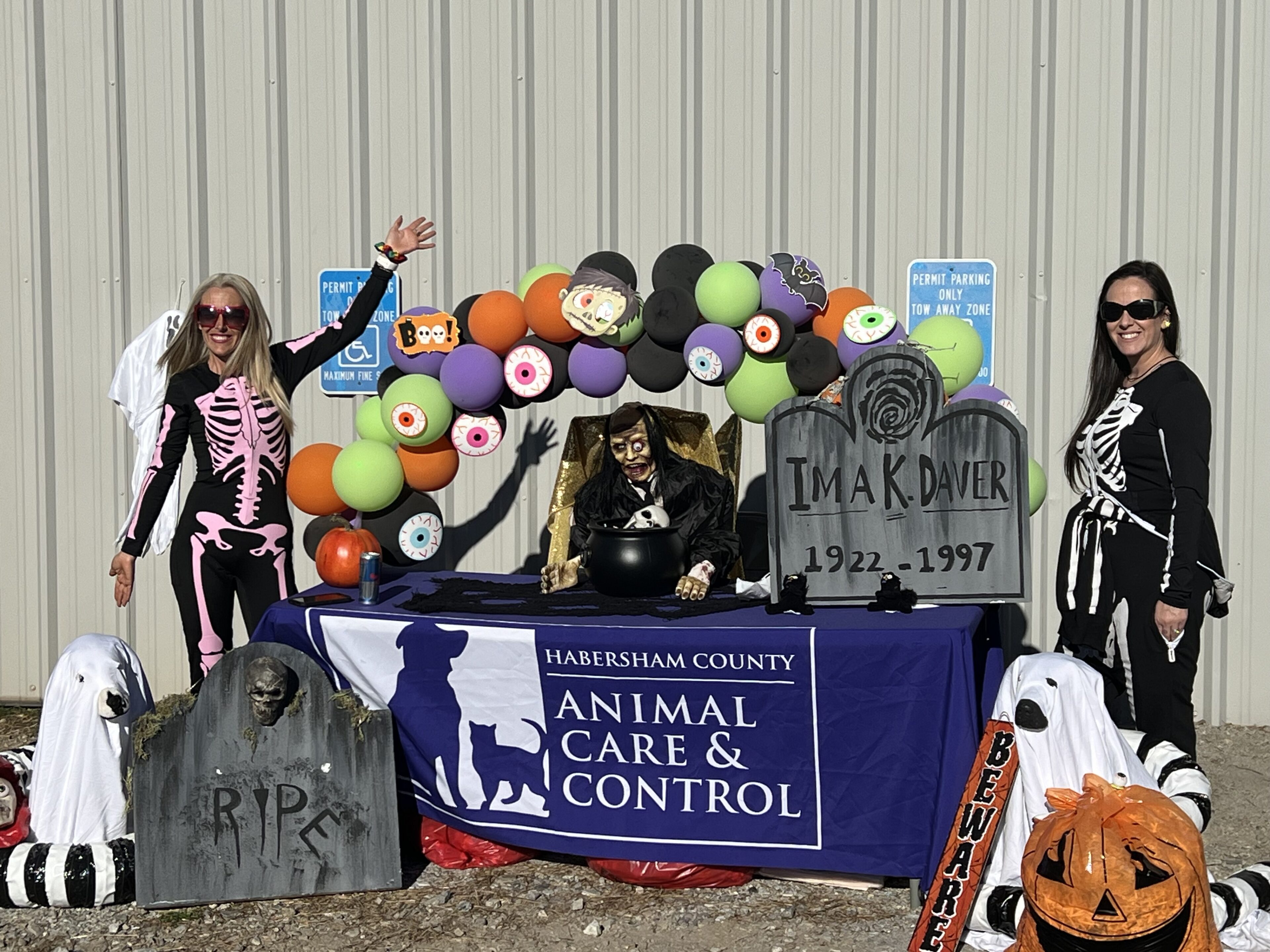 Employees from the Habersham County Clerk’s office dressed as zombies and vampires and filled their booth with tombstones.