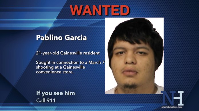 Pablino Garcia, of Gainesville, is being sought for his alleged involvement in a shooting last Thursday at a local convenience store in Gainesville.