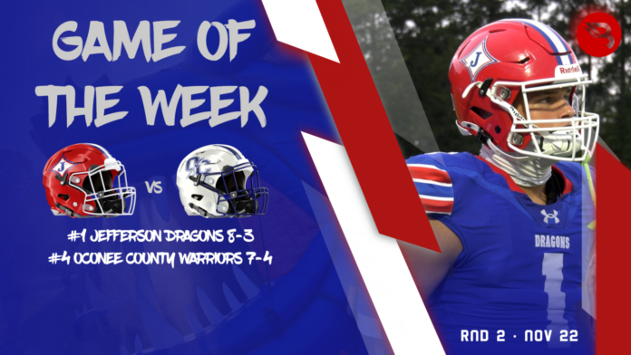 RECORDS: #1 Jefferson Dragons (8-3) vs #4 Oconee County Warriors (7-4)