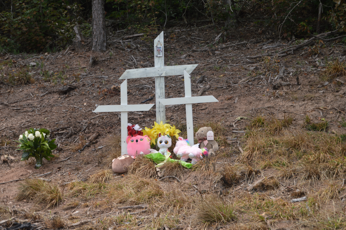 Three wooden crosses stand at the site where Avonlea, Colton, and Maddie Kate Holtzclaw lost their lives. The Dahlonega family died along with two others - Mitchell Boggs and, according to family and friends, Seyhan Kilincci - in a wreck on GA 365 at Mt. Zion Road in Alto on July 16, 2023. Their deaths have renewed calls for GDOT to do something to enhance safety along the heavily trafficked corridor. (Jerry Neace/NowHabersham.com)