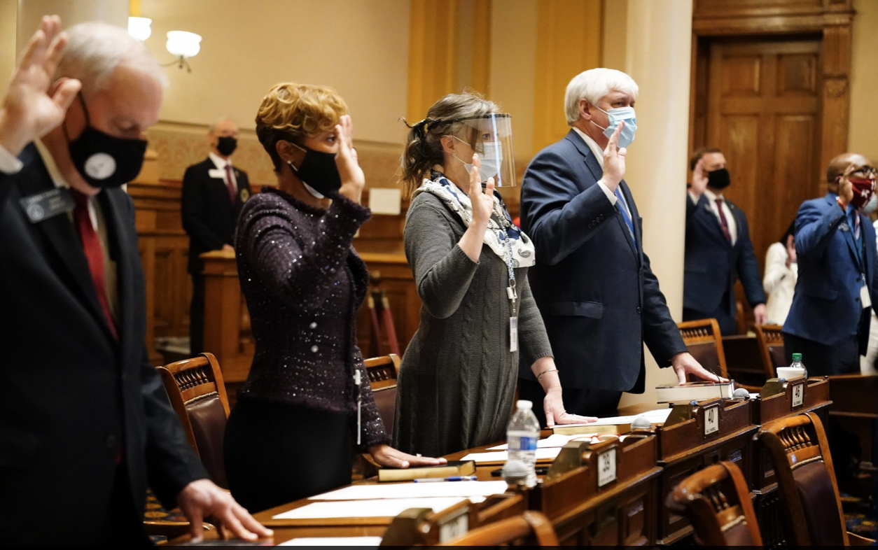 State lawmakers raised their right hands Monday and swore an oath through face masks as the General Assembly started a new session in the wake of last week’s attack on the U.S. Capitol building and as COVID-19 cases surge in Georgia.