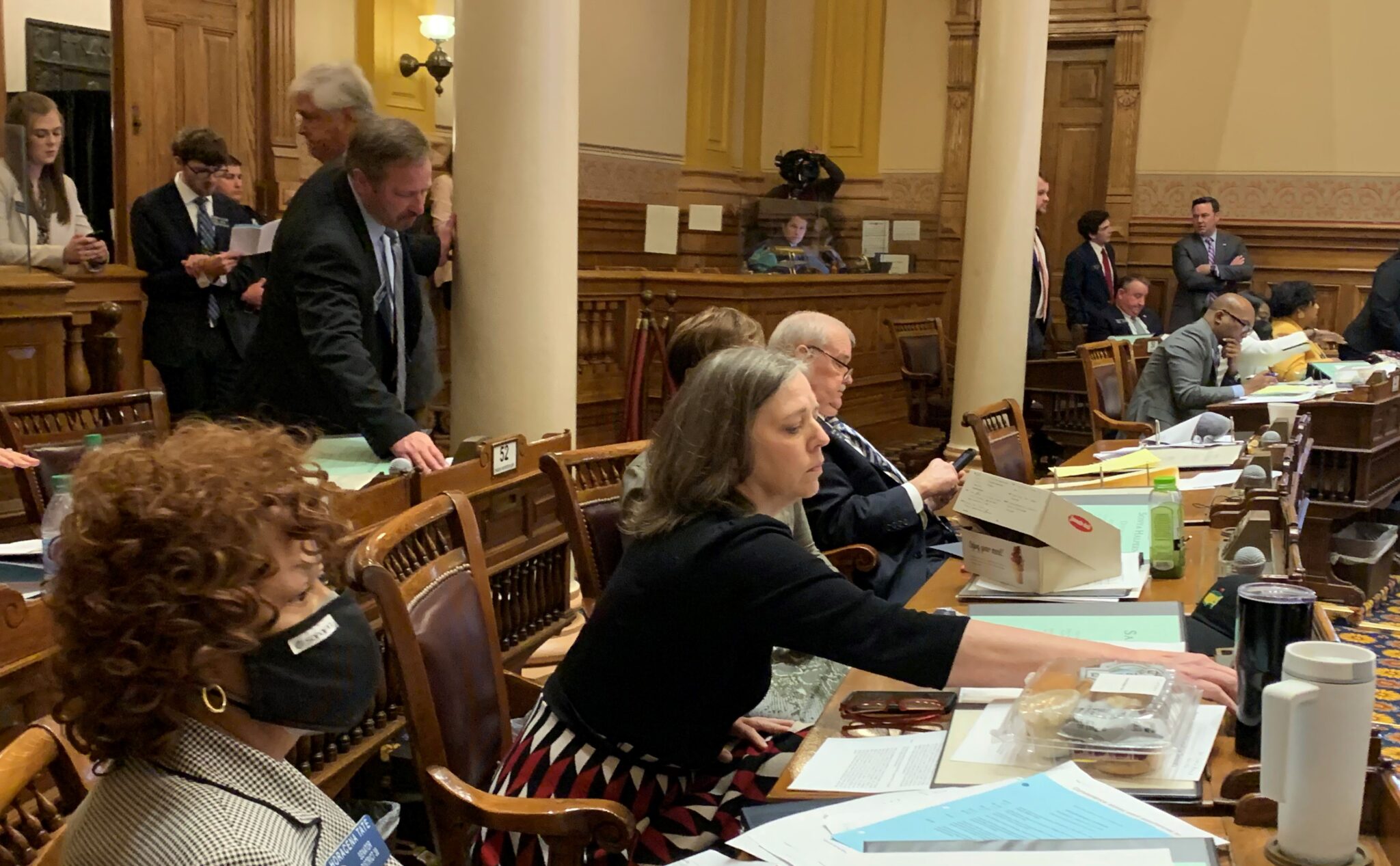 Atlanta Sen. Sally Harrell stood at the podium in the state Senate on Thursday in tears.