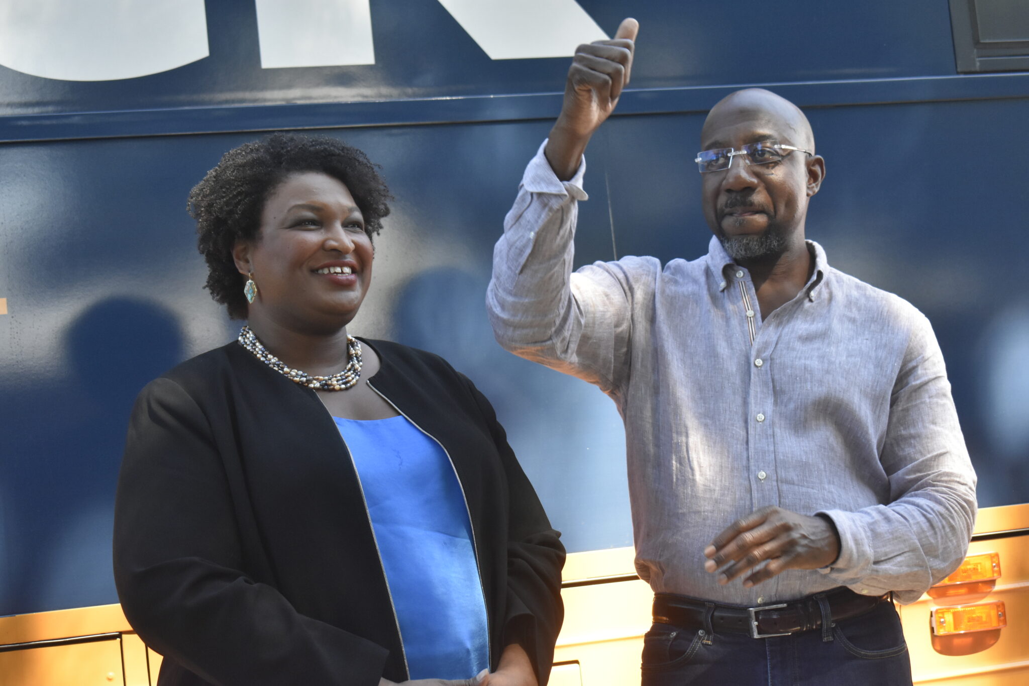 (GA Recorder) — A bus bearing the face of U.S. Sen. Raphael Warnock pulled in to the Cobb County Civic Center parking lot Wednesday, but the freshman senator was not the only Democratic leader to deliver a speech in Marietta.