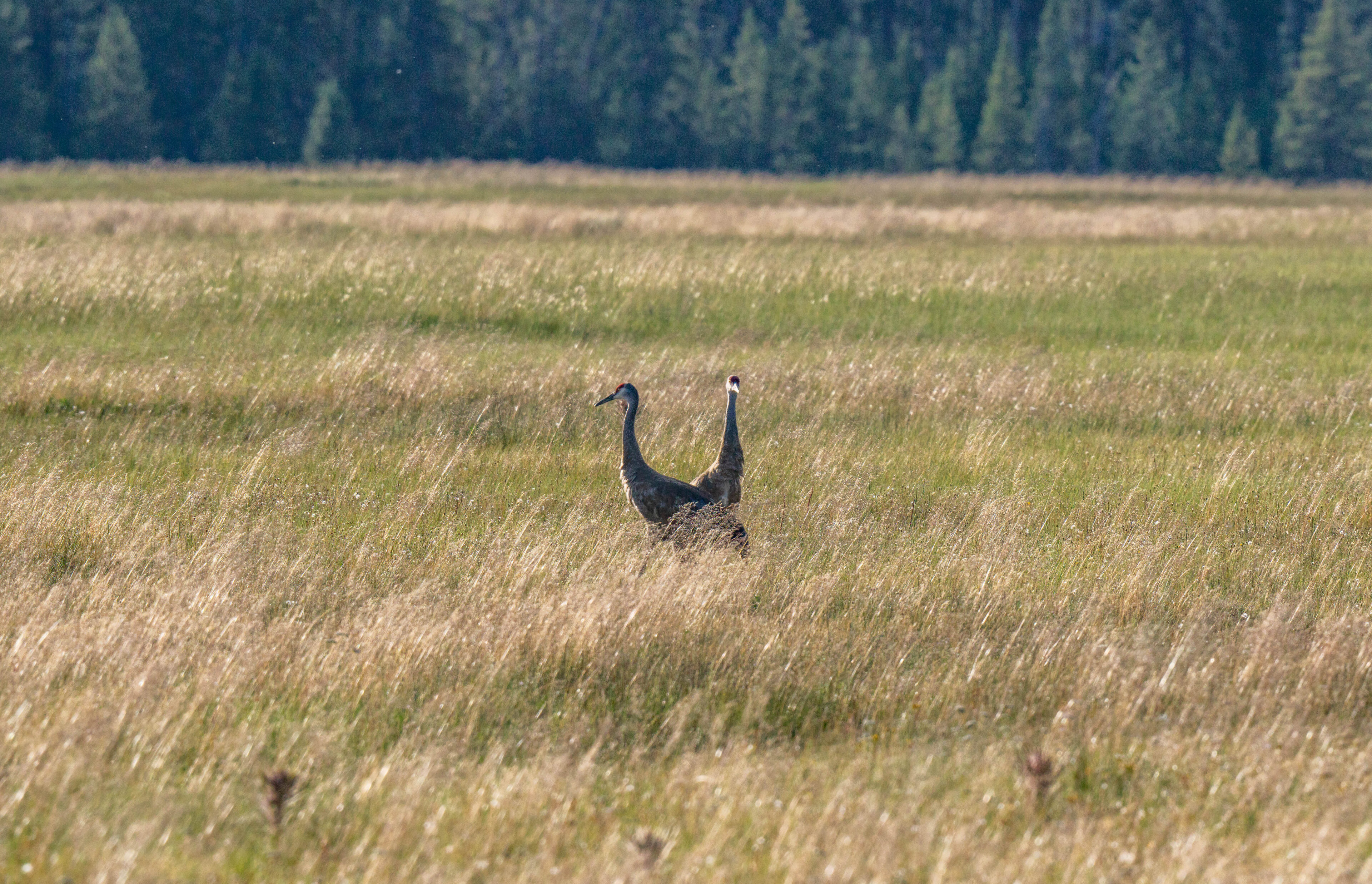 We saw a couple of elk near Mammoth Hot Springs on our first day out, but beyond that, we wouldn’t see a ton of wildlife until the end of Day 2, around Grand Prismatic Spring, and Day 3 in the Lamar Valley and Cascade Lake. The first animals I got some great shots of are the always fascinating Sandhill Cranes. These tall birds can be found during migration across most of the country, but strongly prefer cooler climates and can even be found in Siberia. They can grow over 4ft tall and make a sound that is quite unmistakable. They sound more like bugs than birds to me, but when you hear it, you’ll know for sure what it is.