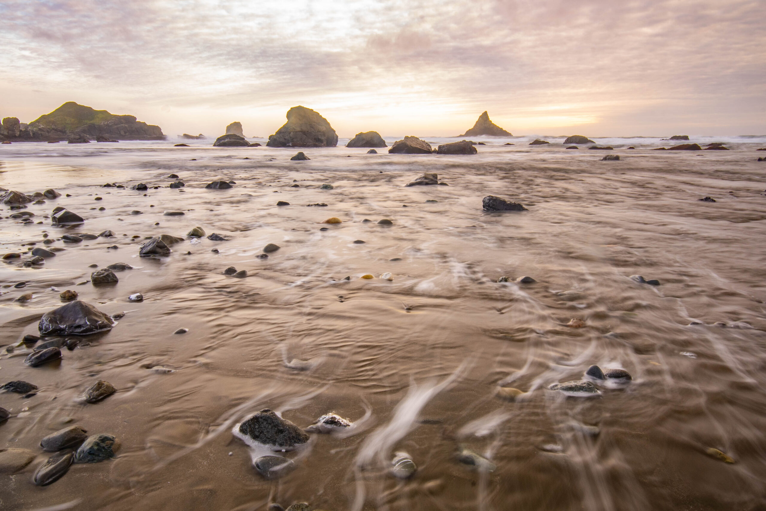I made my way back to my campsite at Harris Beach State Park and hopped out on the local beach. There, I was greeted by some nice colors in the sky and a lot of beautiful rocks to look at.
