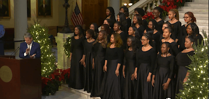 The ceremony also included a performance of Christmas carols by the Spelman College Glee Club, and a speech from radio personality Clark Howard about Clark’s Christmas Kids, an initiative embraced by the state to provide Christmas gifts to nearly 10,000 children in Georgia’s foster care system.