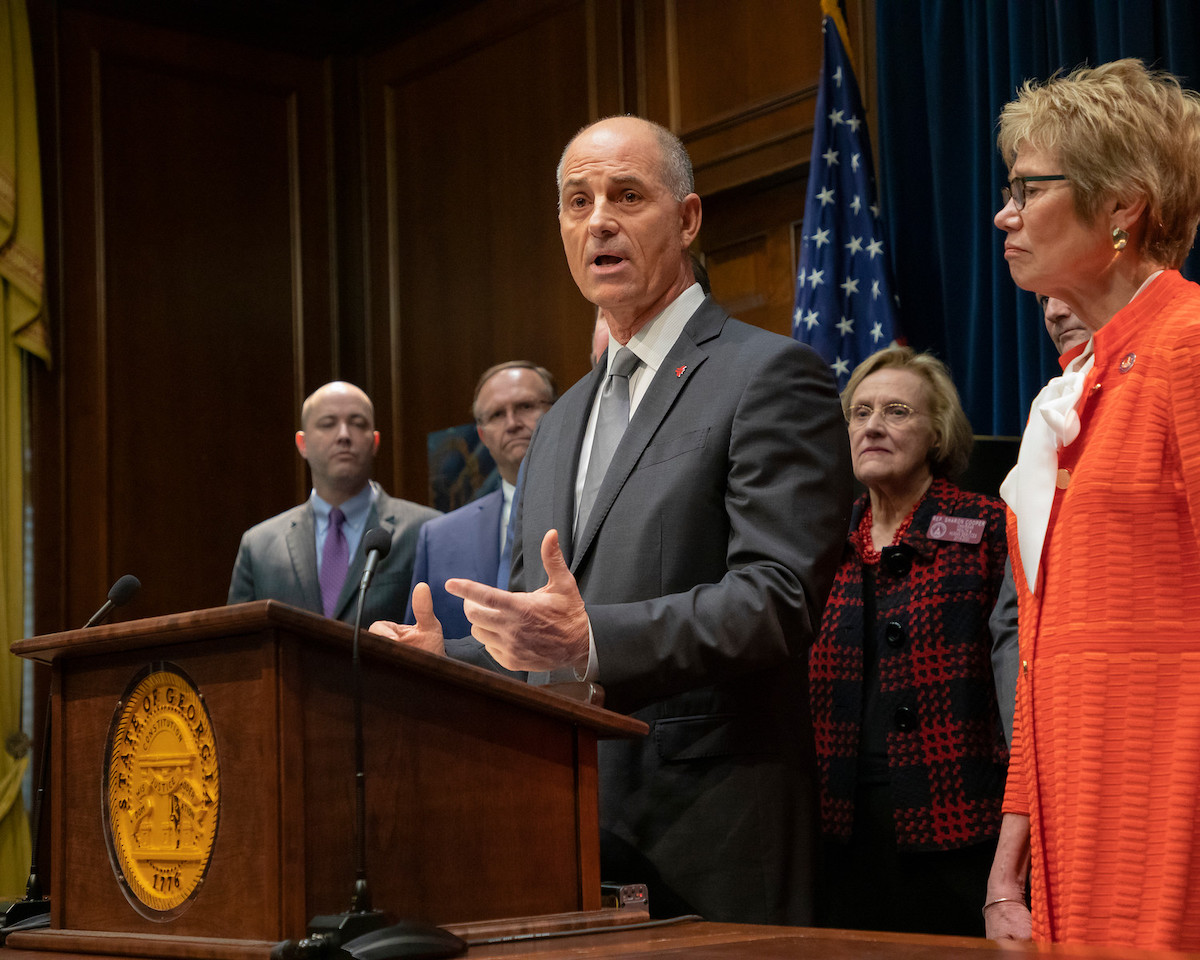 General Manager of Hartsfield-Jackson Atlanta International Airport John Selden outlines what the airport is doing to guard against COVID-19. Selden appeared at a press conference on March 5, 2020, at the State Capitol alongside Gov. Brian Kemp and Georgia Commissioner of Public Health, Dr. Kathleen Toomey. (Bryan Horn/Governor’s Office)