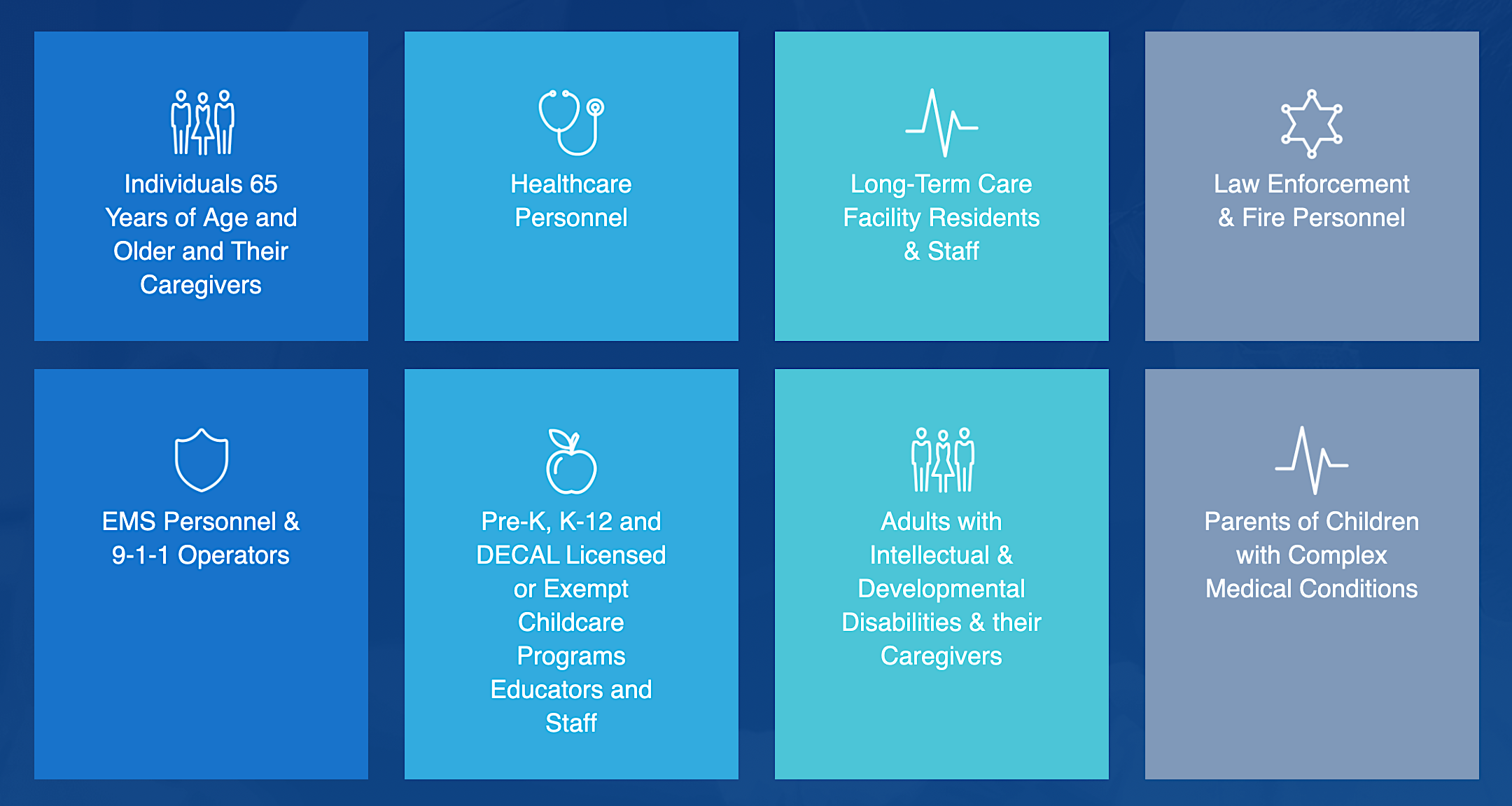 Those eligible to receive the vaccine under Phase 1A+ may schedule an appointment at any of the eight state-operated mass vaccination sites by visiting myvaccinegeorgia.com. Georgian’s may also connect with their local public health departments or view appointments offered by over 2,000 private healthcare providers at dph.georgia.gov.