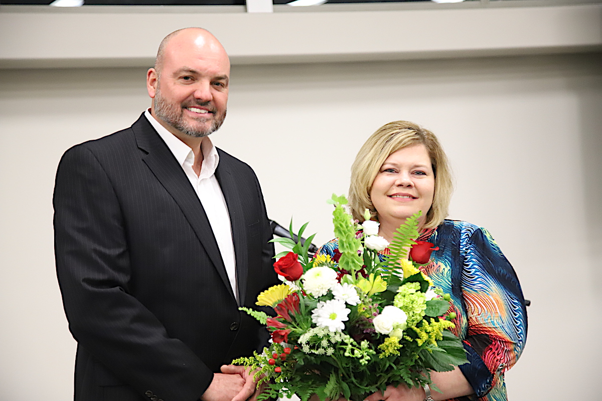 The TOTY and SPOTY awards came to a close by memorializing SPOTY Leah Hill of Level Grove Elementary, who passed away this December. Her husband and children came to the event in her memory, and were presented with a plaque to honor her achievments in Habersham County Schools. “Anybody that knows Leah knows her smile was her signature,” said Level Grove principal Darlene Hudson, Ph.D. “She had a way of bringing peace, calm, kindness and joy into any situation.” Hudson recalled Leah Hill as a hard worker who made every child feel loved and important.