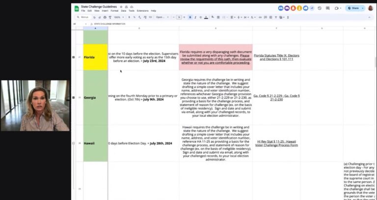 “I think we’re going to see hundreds of thousands of voter challenges in August and September,” she said. “That’s going to have a couple repercussions. One, it’s going to successfully remove people from the rolls, whether that’s accurate or not, I don’t know. But I think county election offices are going to feel like their hands are tied, given the new legislation, and they’re going to vote to remove people from the rolls based on flimsy evidence, whereas prior to the legislation that passed this year, they would have not voted to remove those same people from roles.”