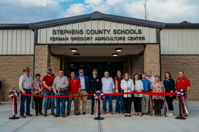After a year of construction, the Stephens County School System cut ribbon to recognize completion of the Ferman Gregory Agriculture Center on Monday, Sept. 30.