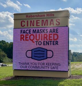 “We are following all CDC, state, and local guidelines in each of our locations,” says Chambliss. Moviegoers are required to wear masks except when eating refreshments. Theaters also are offering reserved seating to help maintain social distancing. Tickets are still being sold at the box office, but theater owners recommend people purchase them online. “We will have rows blocked off and our seating software will not allow you to purchase seats within a certain distance of the next closest party,” says Chambliss.