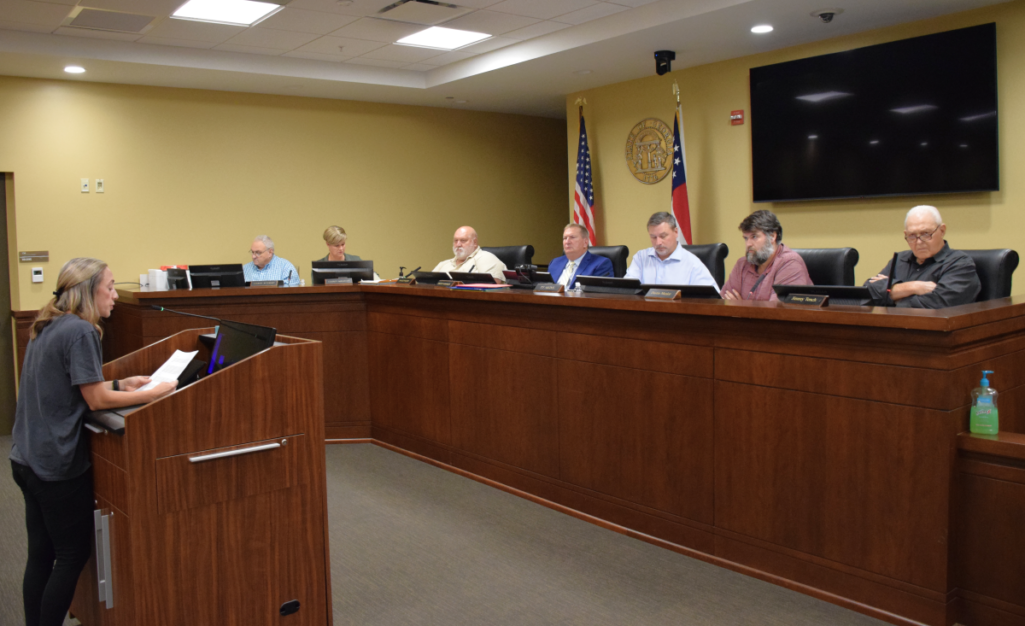 Heather Benton of Clarkesville who has two daughters in the gymnastics program was the first of several to address the commission. All had the same message, to preserve the gymnastics program in the Habersham County Recreation Department and not to privatize the program.