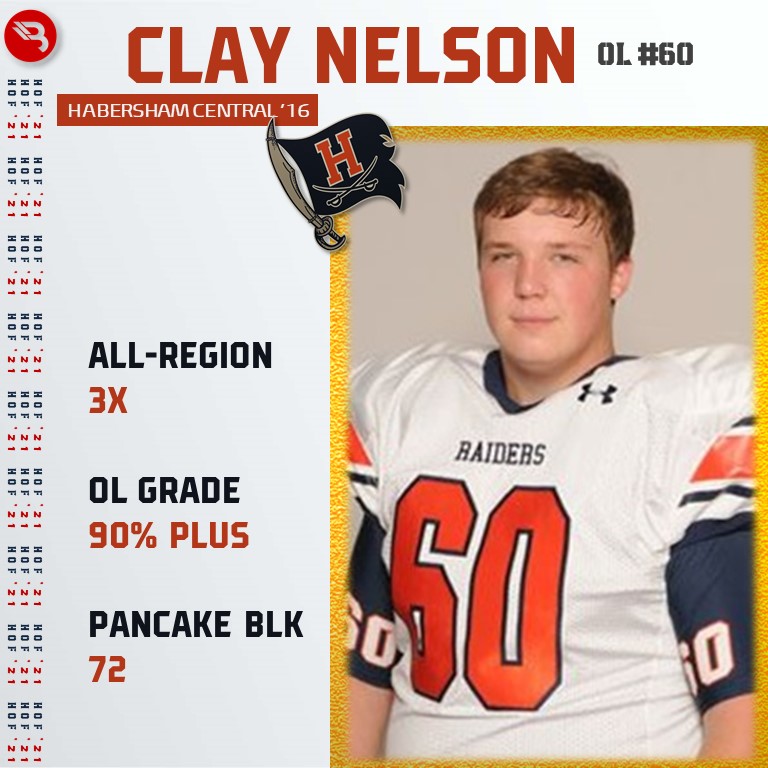 Nelson was a 2-time First Team All-Region selection while anchoring the front line for the Raiders. Overall, he was a 3-time All-Region selection who graded out at 90% and registered 72 pancake blocks. Nelson went on to play college ball at Berry College. (3,418 votes)