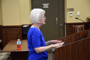Only one citizen spoke in opposition of the budget during the scheduled public hearing. Paula Hanington addressed the commission with her concerns about the budget, starting with inflation. “The people here have had to deal with inflation by cutting expenses,” she tells the commission. She adds, “Unfortunately, that doesn’t seem to be the same route that’s being taken by this proposed budget.”