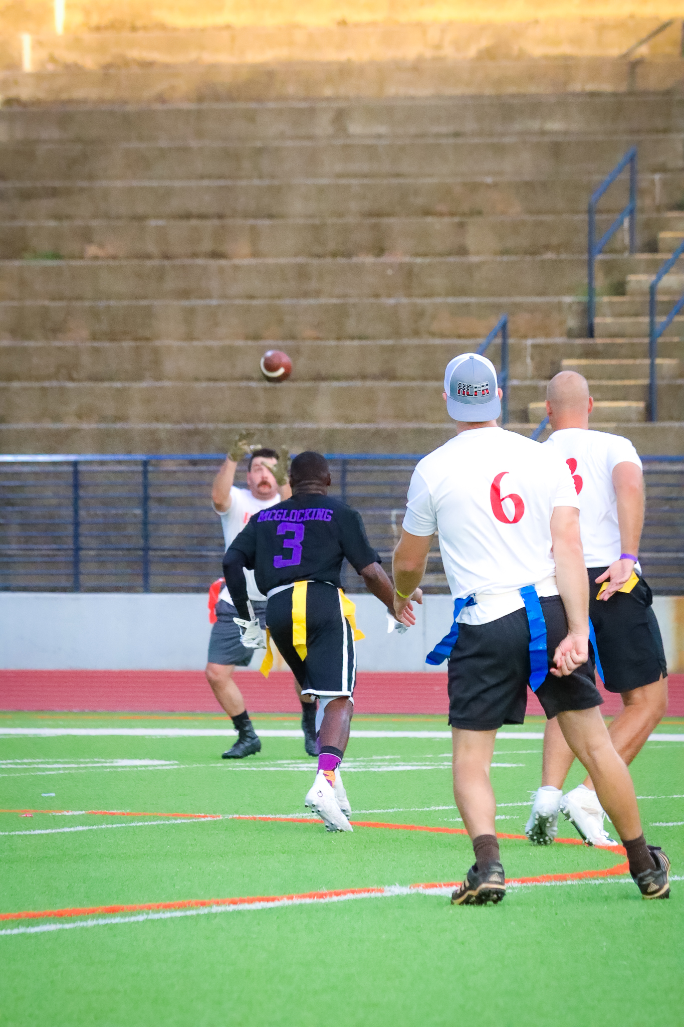 The Habersham/Banks squad defeated Hall County in Saturday night’s charity flag football game, 34-27.