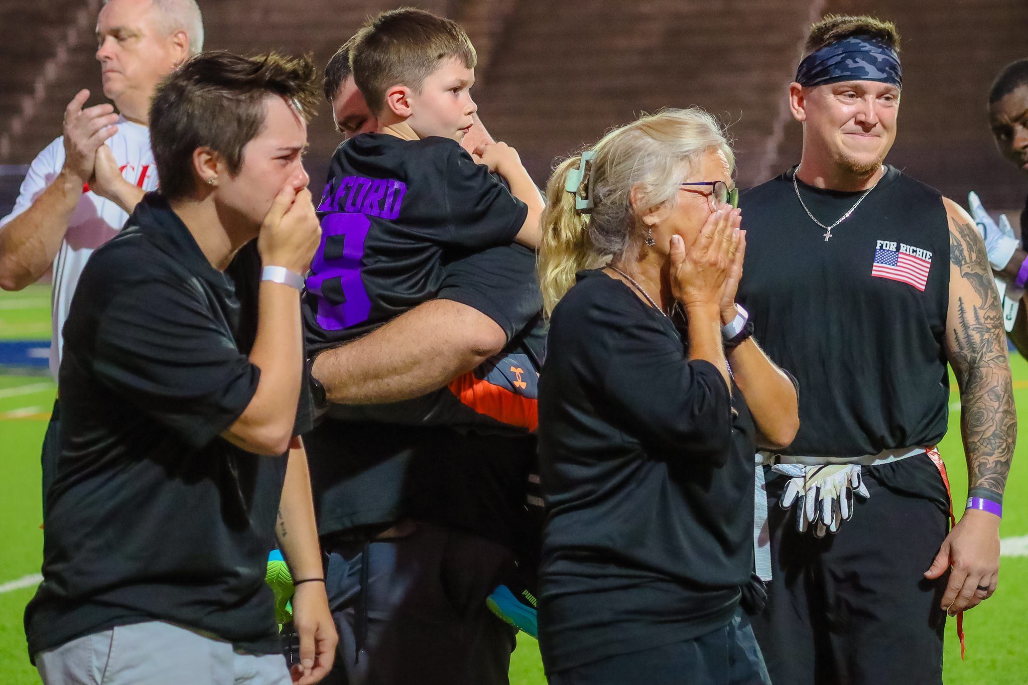 Alford served as the team captain for the Habersham/Banks squad for many years. He died in June while trying to rescue two swimmers at Panama City Beach, Florida. The Foundation recognized Alford’s family during a special halftime ceremony, presenting them with framed photos of him.