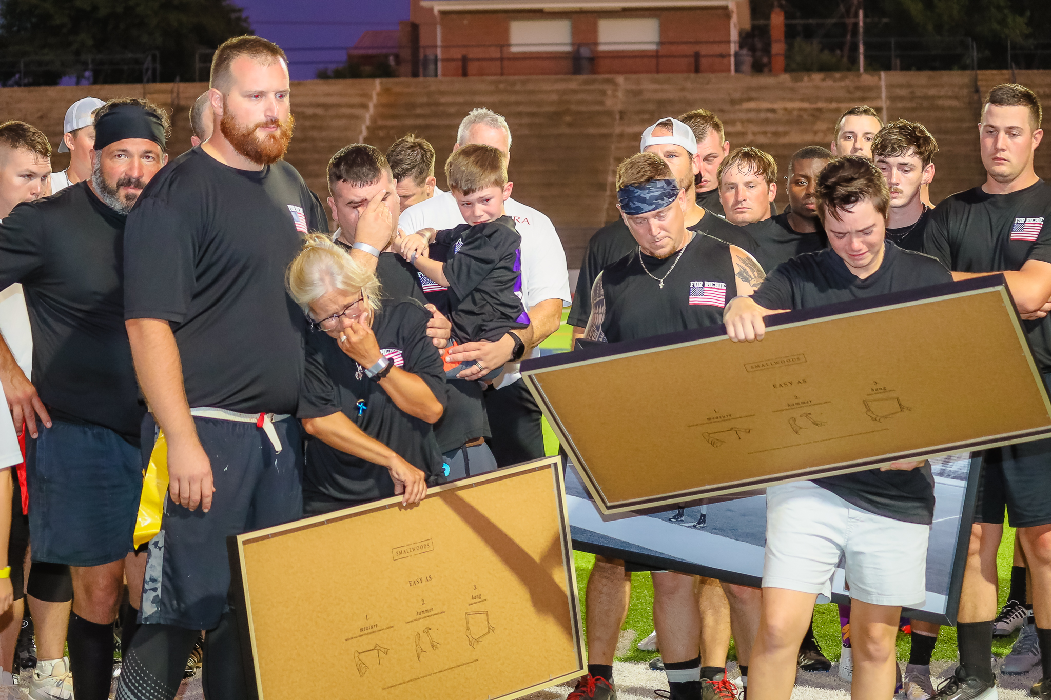In addition to fundraising, the halftime ceremony provides a public setting in which to honor first responders. This year, The Easton Foundation honored one of its own—former Banks County Fire Capt. Richie Alford.