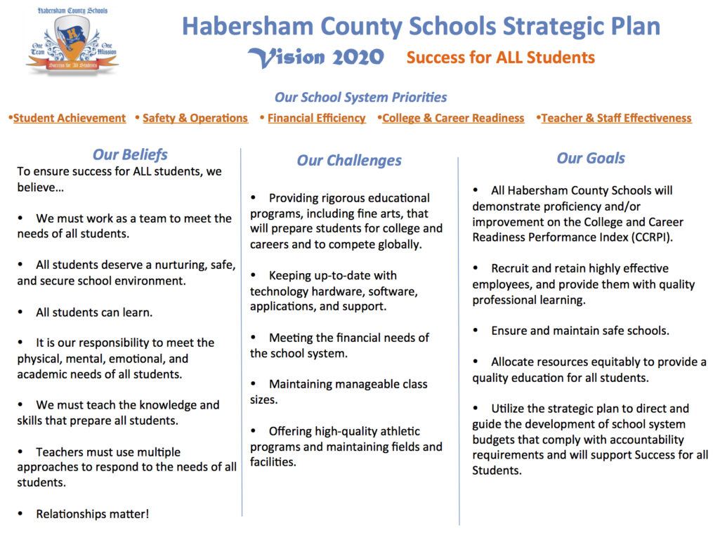 One major component of the SWSS contract is the school system’s strategic plan. Habersham County’s plan was developed over two years with input from educators, students, parents and the public.