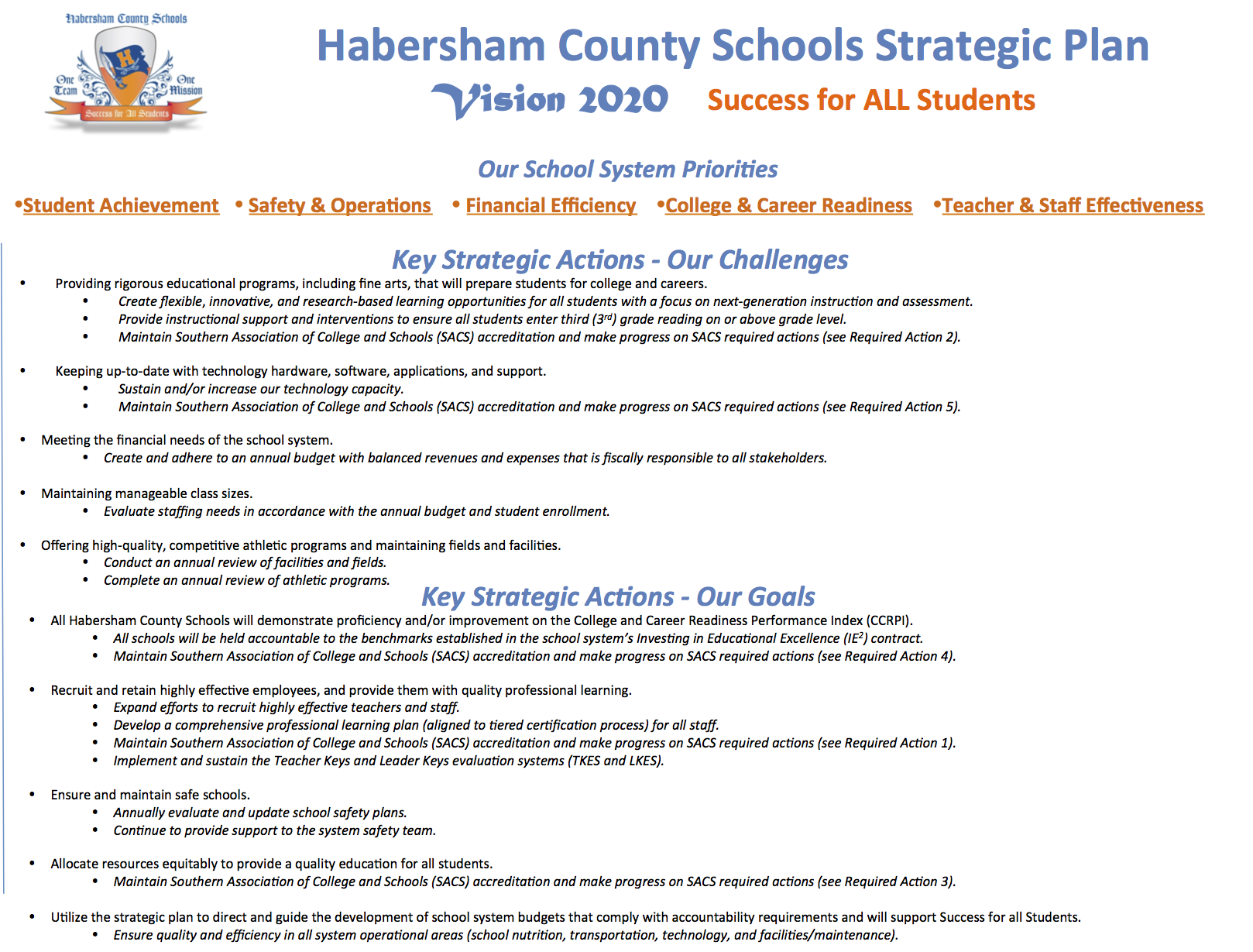 One major component of the SWSS contract is the school system’s strategic plan. Habersham County’s plan was developed over two years with input from educators, students, parents and the public.