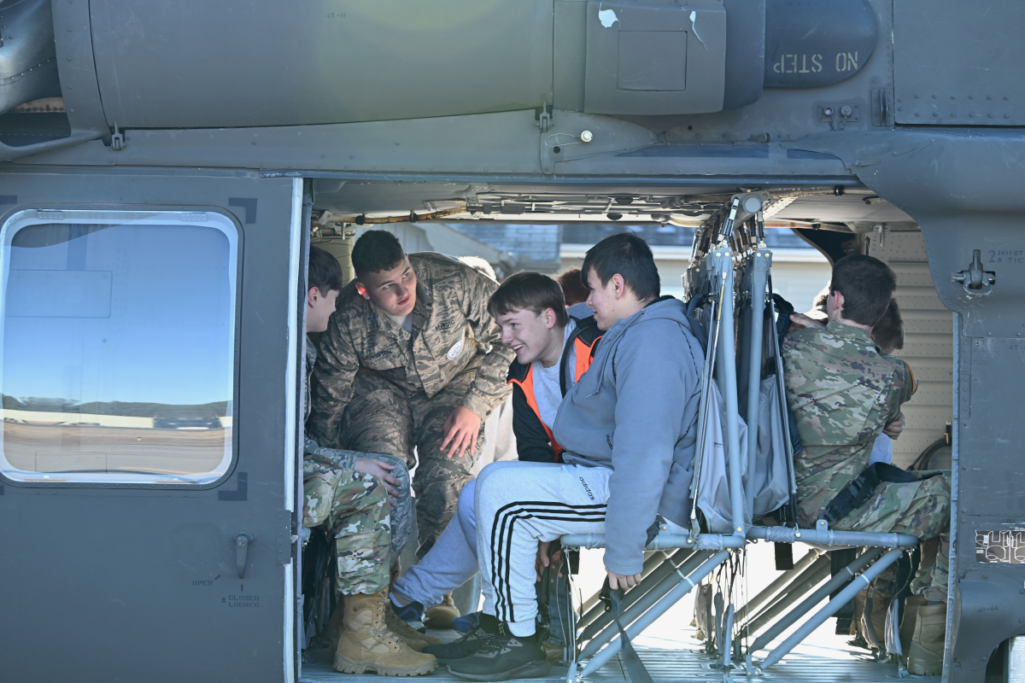Habersham Central High School Air Force Junior Reserve Officer Training Corp (AFJROTC) cadets received a rare opportunity earlier this month. The Georgia Army National Guard flew two UH-60 “Black Hawk” helicopters to the Habersham County Airport in Baldwin to give flight orientations to the cadets.