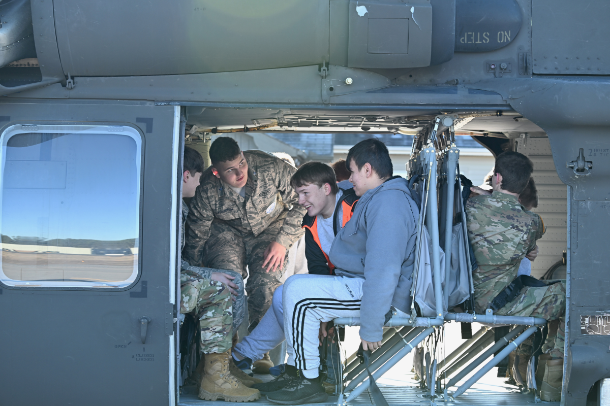 Habersham Central High School Air Force Junior Reserve Officer Training Corp (AFJROTC) cadets received a rare opportunity earlier this month. The Georgia Army National Guard flew two UH-60 “Black Hawk” helicopters to the Habersham County Airport in Baldwin to give flight orientations to the cadets.