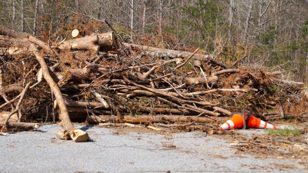 The debris sits in an empty parking lot on the Habersham County Fairgrounds. (Hadley Cottingham/Now Habersham)