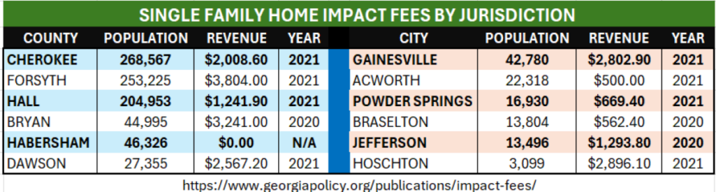 Hall County collected $2,797,319 in impact fees in 2021. In the same year, Dawson County collected $2,201,955. More information about impact fees in other jurisdictions can be accessed here.