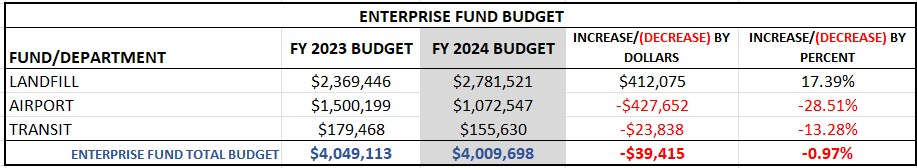 “The SPLOST/Grant/Special Revenue/Enterprise Funds are self-supporting and are not funded by (property) taxes and have an estimated revenue stream that will support those funds.”