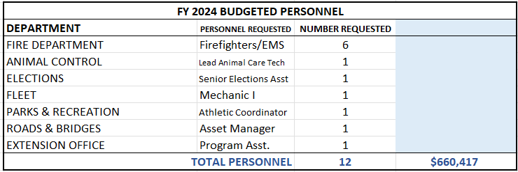 According to Sims, what is in this year’s budget are “only the 12 recommended personnel” and “the full year’s cost of the addition of the third Superior Court Judge.” Sims adds that with a new judge comes additional positions in the district attorney’s and public defender’s offices, as well as an additional Court Reporter.