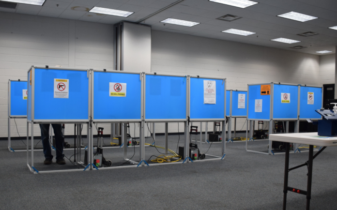 A voter casts a ballot during early voting on Friday November 1, at the Ruby Fulbright Aquatic Center in Clarkesville. (Jerry Neace/NowHabersham.com)