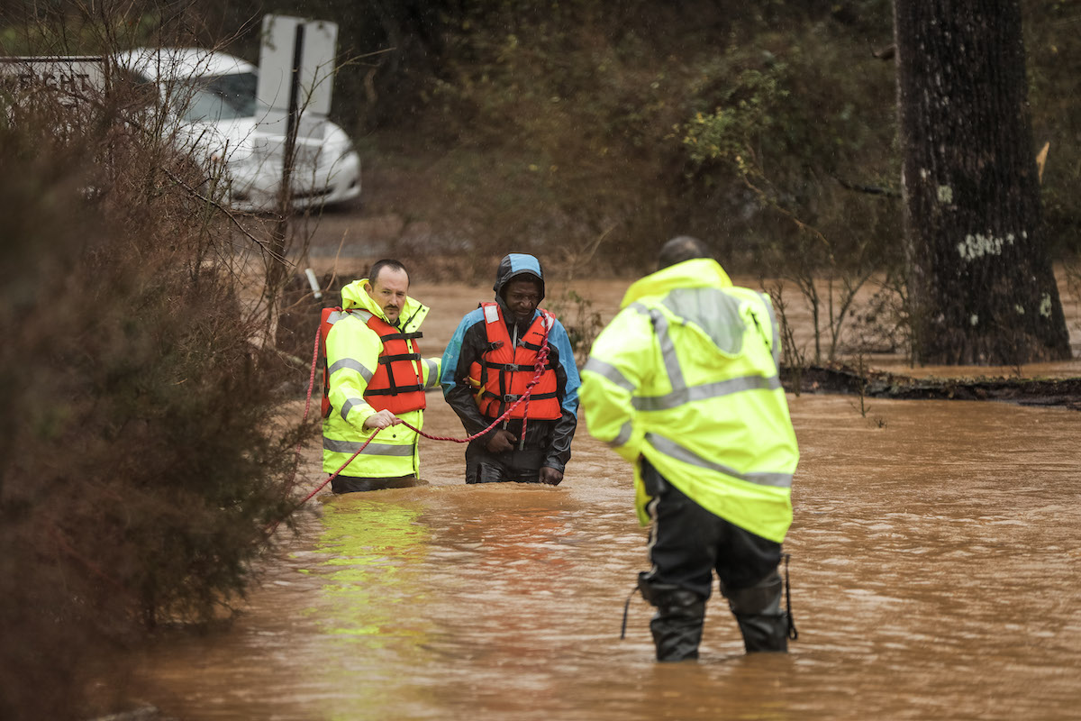 One of the trapped drivers was an Amazon deliveryman. His van was overtaken by floodwaters as he attempted to cross a bridge over Little Mud Creek on Garrison Drive in Cornelia.