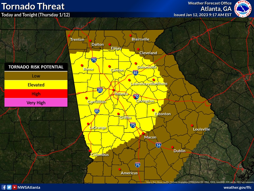 There is an increased threat of possible isolated tornadoes and significant wind damage in the region. Although the timing for the arrival of these storms is uncertain, it falls within a window that could affect normal school closing times.