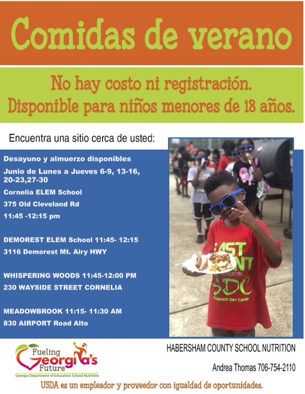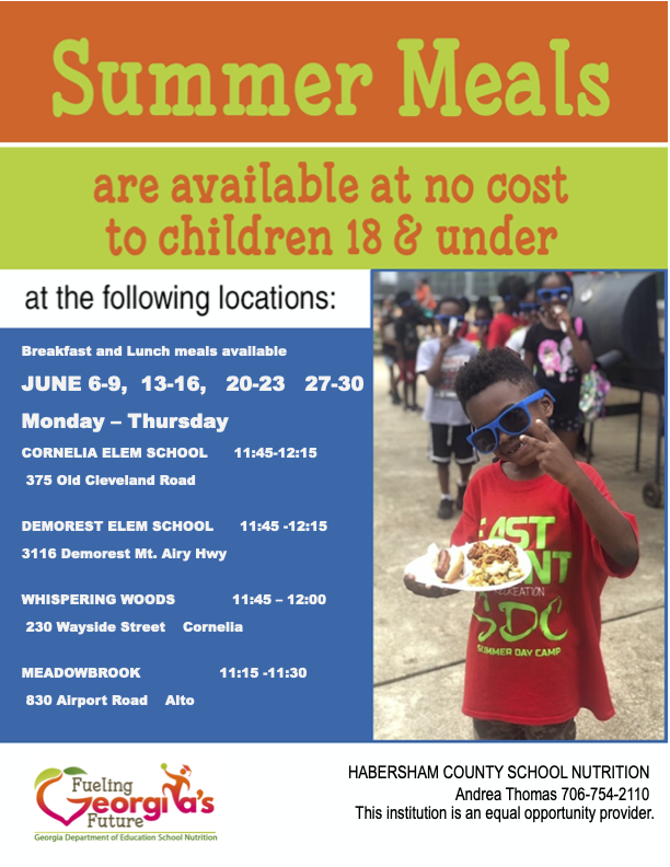The Habersham County School Nutrition Department is again going to serve free summer meals. Breakfast and lunch will be served on weekdays beginning June 6 to those who are 18 years old and younger.