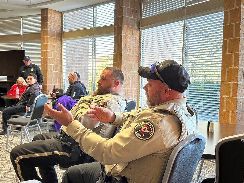 After the training, personnel and college officials held a debriefing to discuss what went well and what could be improved for the future.