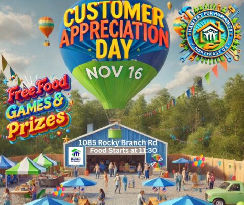 Hotdogs, drinks, and fun giveaways are just some of the activities at the Customer Appreciation Day hosted by Habitat for Humanity of Northeast Georgia’s The ReStore. An all-time favorite of many residents of Habersham County, The ReStore is a treasure hunt of sorts, providing customers with anything from furniture, cookware, and clocks to construction materials and outdoor equipment.