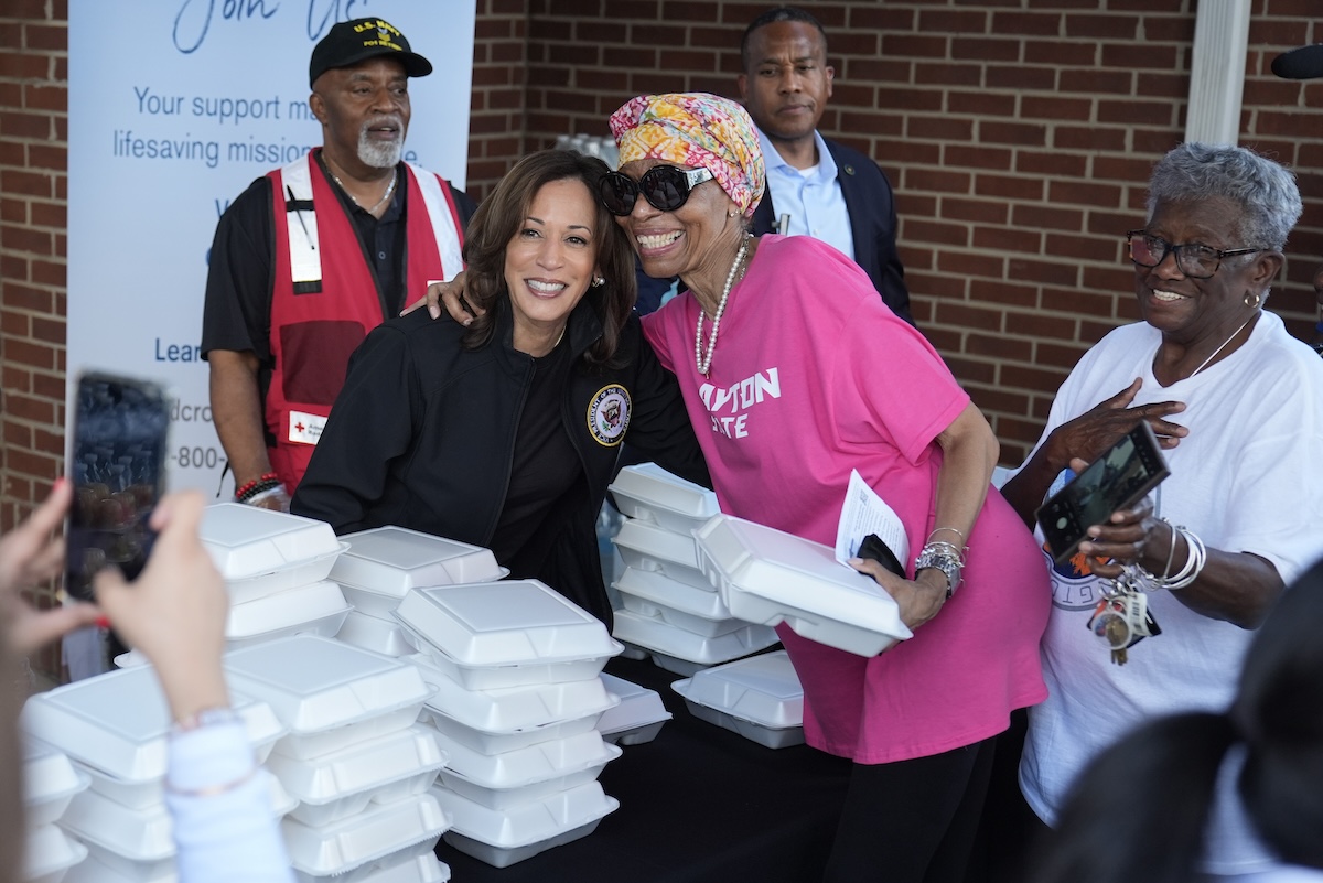 AUGUSTA, Ga. (AP) — Vice President Kamala Harris handed out meals, embraced a shaken family and surveyed Hurricane Helene’s“extraordinary” path of destruction through Georgia on Wednesday as she left the campaign trail to pledge federal help and personally take in scenes of toppled trees, damaged homes and lives upended.