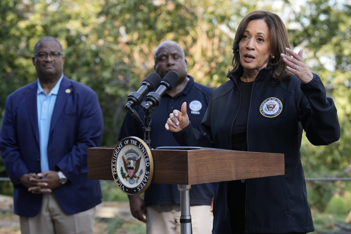 Harris said she wanted to “personally take a look at the devastation, which is extraordinary.” She expressed admiration for how “people are coming together. People are helping perfect strangers.”