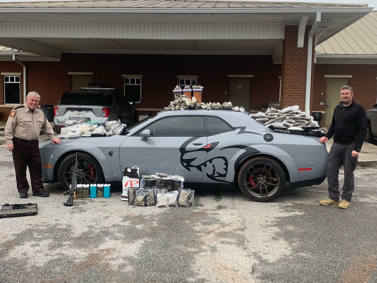 As part of their ongoing investigation, authorities raided two locations in Hart County on January 17 and 18. They seized more than 40 pounds of “high quality” marijuana, two semi-automatic weapons, and more than $11,000 in cash, Cleveland says. Deputies also seized a Jail Break Hell Cat Dodge Charger.