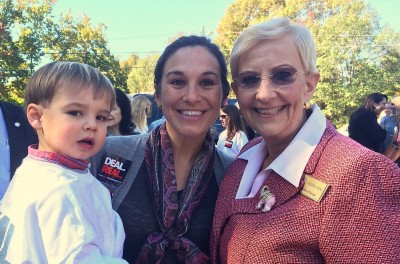 Erin Hames and her son, Isaac, share a quiet moment with the First Lady of Georgia, Sandra Deal, at Monday’s campaign rally in Cornelia. Erin is a 1999 graduate of Habersham Central High School and now serves as Gov. Nathan Deal’s deputy chief of staff for policy. She is the daughter of Larry and Kathy Lovell of Clarkesville.