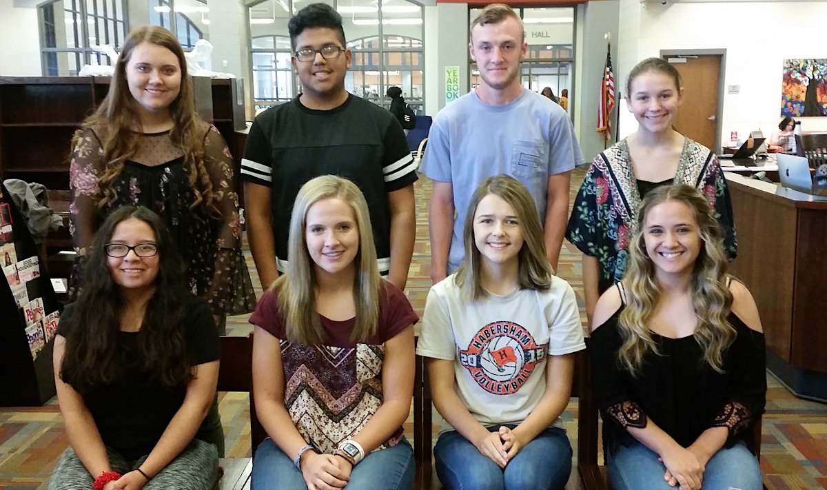 Nine Habersham Central students were recognized by HCHS faculty and staff with a Raider Salute Award. They are front row (l-r): Kat Lane, Leanna Smith, Abby Doster, Alyssa Jacks; back row (l-r): Lexi Sprayberry, Jose Macias, Aydan Tyree, Mary-Jean Levelier. Not pictured, Raymundo Jimenez-Andres.