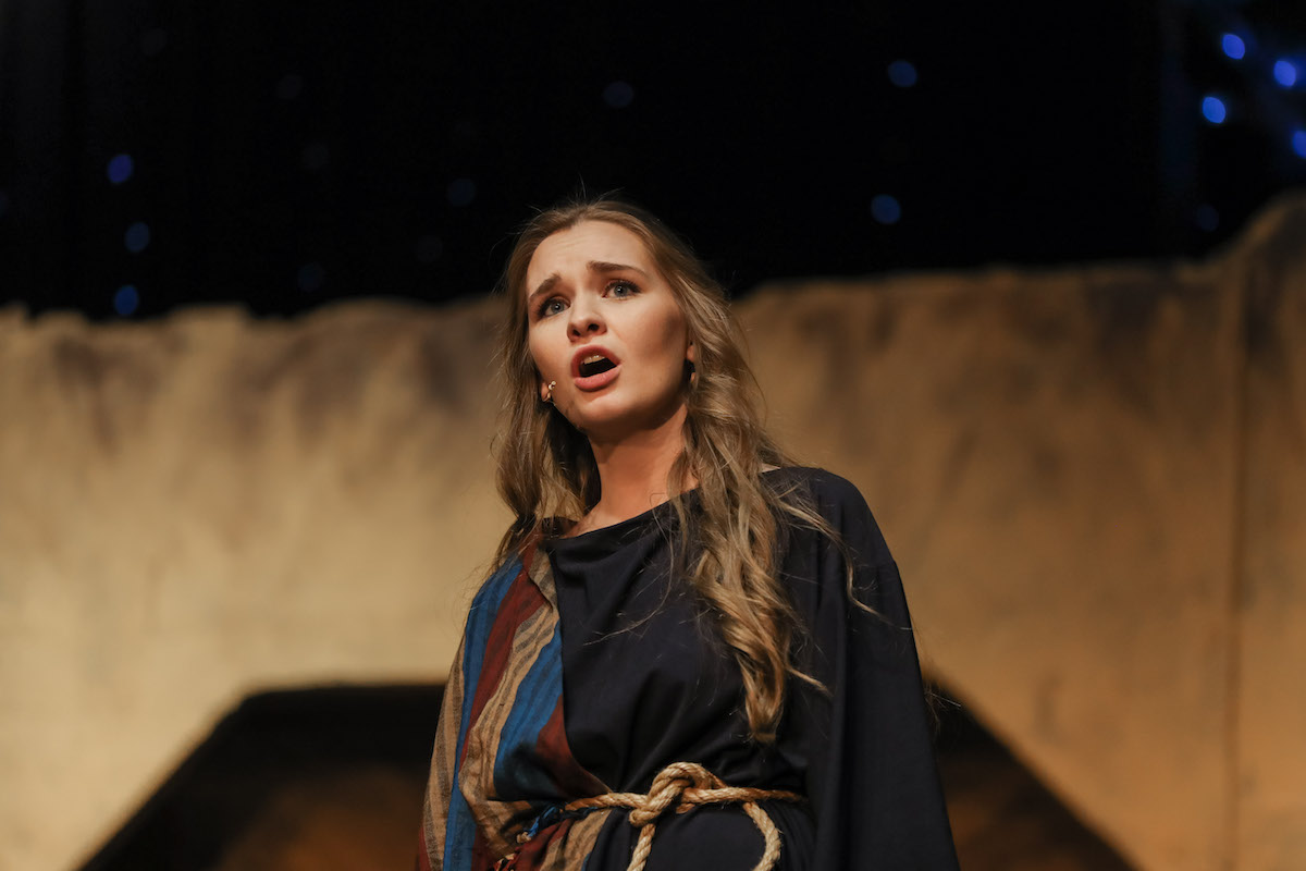 Bishop and Long join Chastain in the trio of Kings. They’re joined on stage by Sam Warren portraying Amahl and Miriam Chastain who portrays the Mother.