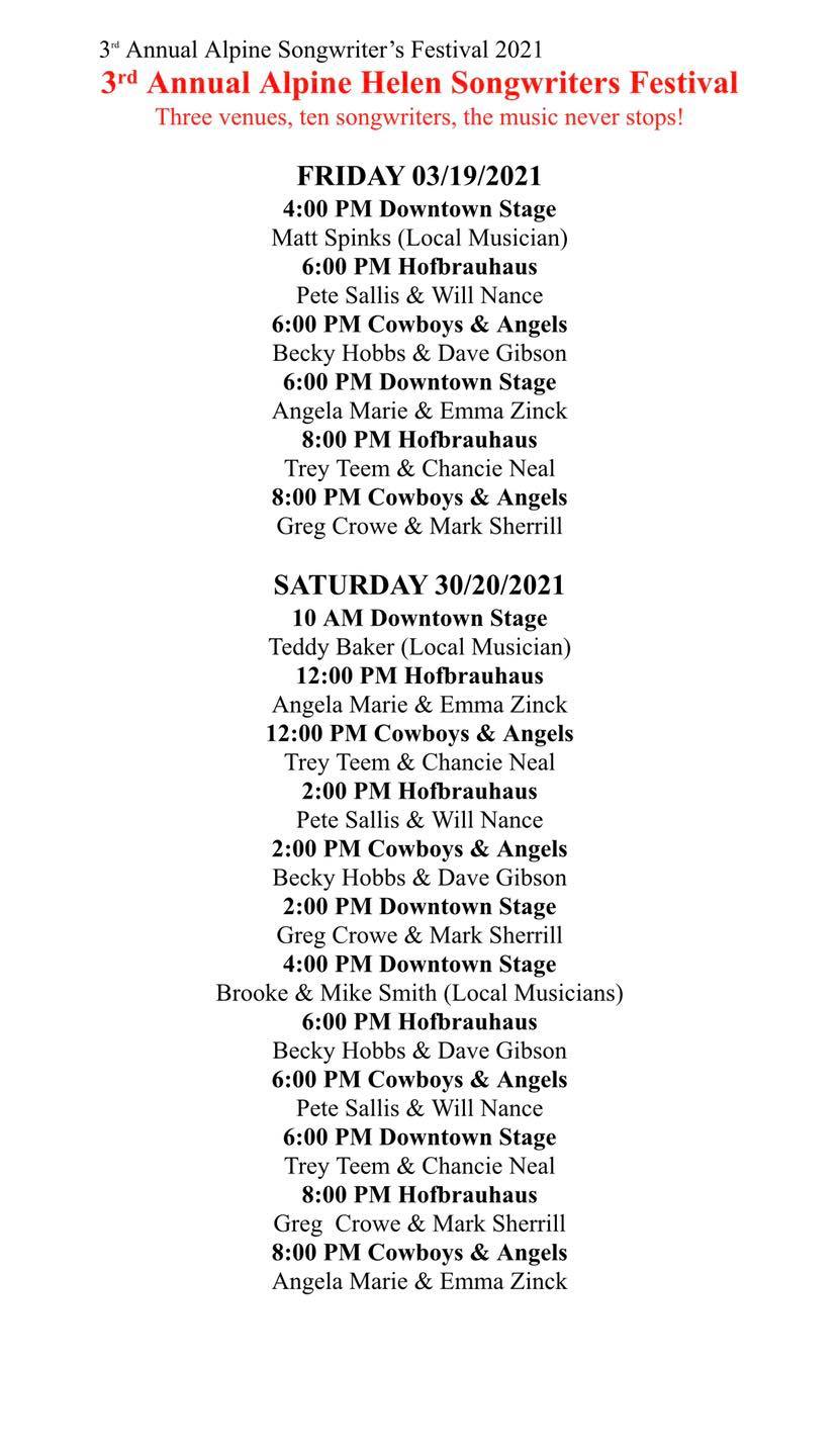The 3rd Annual Alpine Helen Songwriters Festival kicks off this evening. The two-day event will feature nearly a dozen artists including Dave Gibson and Pete Sallis. From Alabama’s “Jukebox in My Mind” to Maddie and Tae’s “Shut Up and Fish,” hear the stories behind the songs.