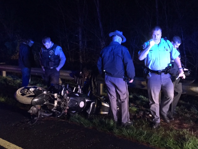 Trooper Church says the motorcycle clipped a patrol car driven by Officer Jordan McKay of the Clarkesville Police Department. He says McKay was part of a rolling road block when the accident happened. “As he (the suspect) was coming up at a high rate of speed the patrol cars had their lights activated and stuff doing a road block. It appeared he was going to try to shoot in between them. One officer moved over to the right shoulder in order to avoid an accident and the motorcycle went to the right at the same time trying to pass him on the shoulder, he locked it up, flipped over and hit the patrol car.”