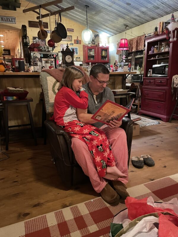 One such tradition comes from Chris’ family. Her mother was German and her grandmother moved to the United States from Germany. As a child, her grandmother would set her snowboots outside the door for “Kris Kringle” to fill with fruit, candy, and nuts. Over the years, Chris has continued the German tradition by giving her children brown bags to put outside for Santa to fill.