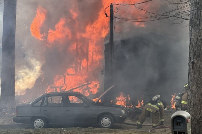 Firefighters responded to a report of a fire at the single-family residence around 4:40 p.m. on March 19. They arrived to find the house “well involved with several vehicles in the yard also burning,” says Chief Steve Nichols.
